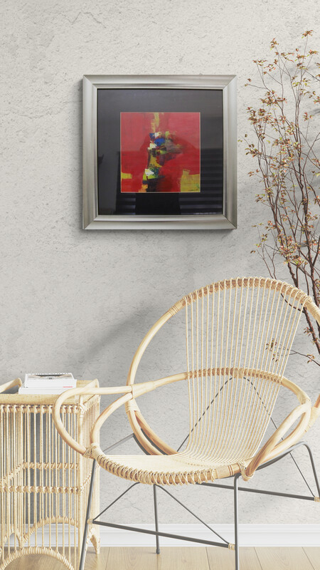 تعكس هذه اللوحة التجريدية للفنان الراحل محمد عوّاد قدرته العالية على توظيف اللون والتوازن المكانيّ بأسلوبٍ تعبيريٍّ رصين. يهيمن اللون الأحمر القرمزيّ على سطح اللوحة، تتخلّله ومضاتٌ لونيةٌ من الأصفر والأزرق والأخضر والأبيض كأنّها أنوارٌ تتجلّى من عمقٍ داخليٍّ مضيء. وتُبرز ضربات الفرشاة المتفاوتة بين القوة والدقّة إيقاعًا بصريًّا نابضًا يجمع بين الحركة والسكون. يُعيد عوّاد في هذا العمل صياغة الإحساس الإنسانيّ في حوارٍ لونيٍّ خالص، حيث يشير المحور العموديّ إلى مسارٍ من السموّ الداخليّ، فيما يرمز اللون الأحمر إلى الدفء والعاطفة والتجلّي الروحيّ. تمثّل اللوحة تأمّلًا بصريًّا في جوهر الحضور واللون، وشهادةً على قدرة الفنان على تحويل الشعور الروحيّ إلى لغةٍ تشكيليةٍ صافية.