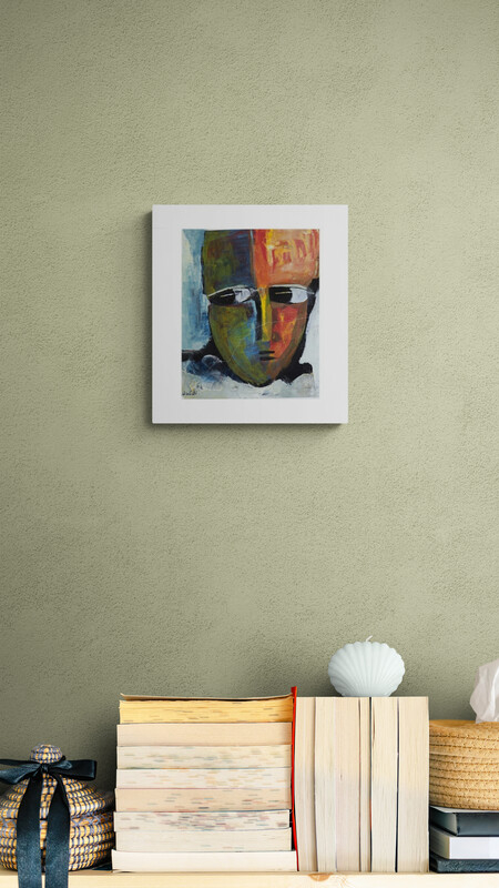 يحوّل المرحوم محمد عوض التأمل الداخلي إلى صورةٍ بصرية. فالوجه هنا لا يحمل ملامح شخص بعينه، بل يُمثّل إنساناً في أبعاده الوجودية. نصفه يغمره دفء الأحمر والأوكر، ونصفه الآخر يبرد تحت الأزرق والأخضر، وبينهما خطٌّ أصفر دقيق يرمز إلى التوازن الهش بين الفكر والعاطفة، وبين الحضور والغياب. العينان بالأسود والأبيض تسبحان في مساحةٍ من الصمت والتأمل، لا تنظران إلى الخارج بقدر ما تغوصان إلى الداخل، حيث ينكشف عمق الإنسان في وحدته وسكونه. يجمع العمل بين التجريد والتصوير، ليعبّر عن بحث الفنان الدائم عن جوهر الإنسان لا عن شكله. يُعد هذا العمل من آخر تأملات عوض في هوية الإنسان ككيانٍ روحيّ متحوّل، تُعبّر عنه الألوان أكثر مما تعبّر عنه الملامح — صدىً أخير من حواره الطويل مع الصمت والنور.