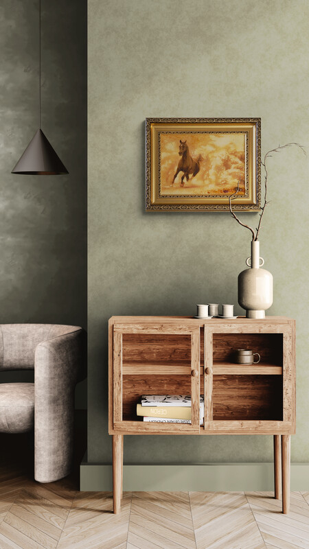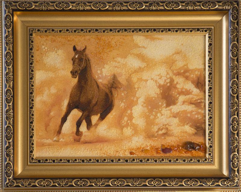 Desert Stallion radiates warmth and vitality through the natural glow of amber. Crafted with crushed amber and polished fragments, the piece captures a galloping horse emerging from a cloud of golden dust — a vision of energy, nobility, and freedom. Each grain of amber reflects light like desert sun on shifting sand, while the material’s organic texture gives the scene a living depth. As part of the Amber Series, this work transforms a natural gem into storytelling — merging mineral, motion, and spirit in a timeless expression of endurance and grace.
