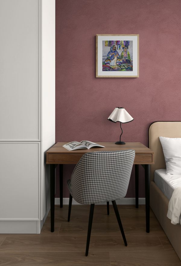 Abdul Wahab continues his expressive homage to Emirati culture through this vibrant depiction of two women absorbed in traditional handiwork. Their richly patterned garments and serene postures reflect the rhythm of community life and the quiet endurance of creative labor. The composition is alive with color — a mosaic of textile patterns that symbolize continuity, heritage, and the feminine role in preserving the beauty of Emirati identity. The background, textured with abstract motifs, suggests the domestic space as both a workshop and a sanctuary of memory.