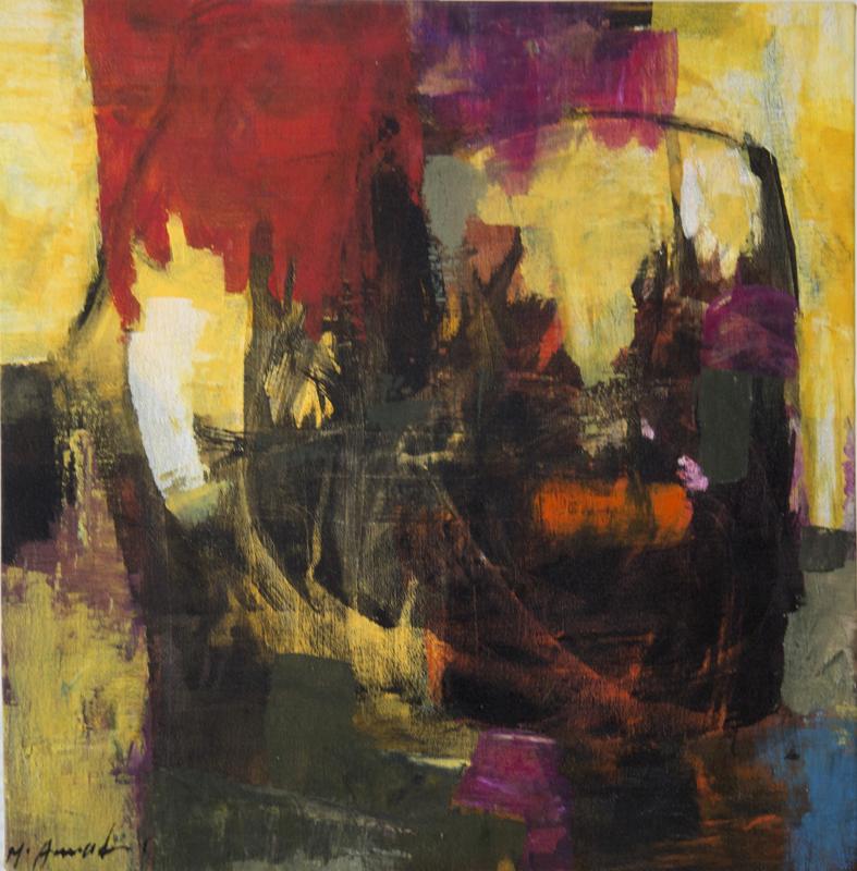Echo of Color reveals the expressive mastery of the late Mohamed Awad, whose abstract language transforms pigment into emotion. The composition vibrates with dynamic contrast — deep blacks and fiery reds interwoven with golden ochres and flashes of violet. Within this chromatic turbulence lies a powerful sense of motion and depth, as if light itself were wrestling with shadow. This painting stands as a testament to Awad’s ability to merge spontaneity with structure, intuition with reflection. In its abstraction, Echo of Color becomes an elegy — a visual memory of an artist who painted with heart and silence as his instruments.